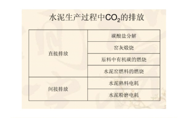 根據(jù)GB/T 12960-2019 《水泥組分的定量測定》,水泥生產(chǎn)排放的二氧化碳包括:由生產(chǎn)水泥的主要原料石灰石中的碳酸鈣分解生成水泥熟料必需的氧化鈣的同時生成的二氧化碳;煅燒水泥熟料和烘干原料用燃料燃燒產(chǎn)生的二氧化碳。